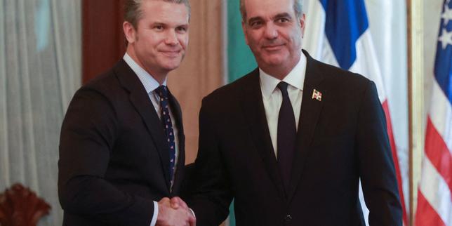 Le ministre de la défense américain, Pete Hegseth, et le président dominicain, Luis Abinader, lors d’une réunion au Palais national, à Saint-Domingue, le 26 novembre 2025.