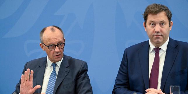 Le chancelier allemand, Friedrich Merz (à gauche), et le vice-chancelier et chef du Parti social-démocrate et ministre des finances, Lars Klingbeil, à la Chancellerie, à Berlin, le 28 novembre 2025.