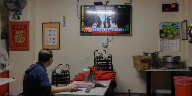 Les exercices militaires de l’Armée populaire de libération chinoise autour de Taïwan diffusés à télévision locale à Keelung (Taïwan), le 30 décembre 2025.