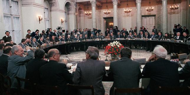 Table ronde organisée le 6 février 1989 à Varsovie entre le gouvernement polonais et l’opposition sur les questions politiques et problèmes économiques du pays.