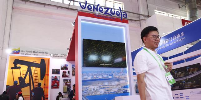 Stand de la compagnie pétrolière et gazière d’État vénézuélienne Petróleos de Venezuela lors de la troisième édition du China International Supply Chain Expo, à Pékin, le 17 juillet 2025.