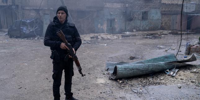 Un membre des forces de sécurité intérieure du gouvernement syrien se tient sur un point de contrôle dans le quartier de Cheikh-Maqsoud à Alep, en Syrie, le 12 janvier 2026.
