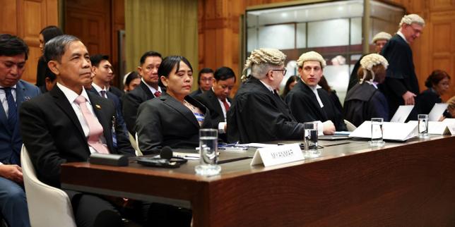 Ko Ko Hlaing (à gauche), ministre de la coopération internationale birman, à l’audience de la Cour internationale de justice, à La Haye, le 12 janvier 2026.