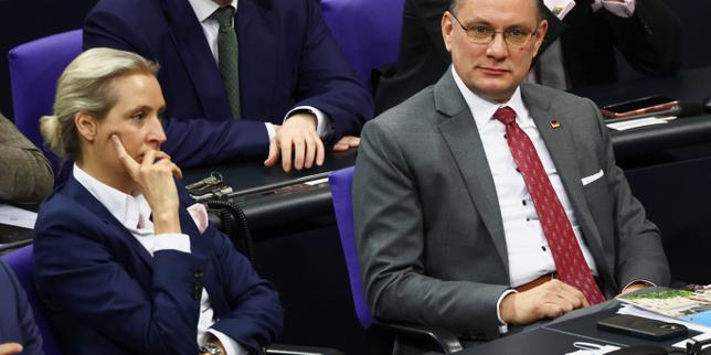 Alice Weidel et Tino Chrupalla, co-dirigeants du parti Alternative pour l’Allemagne (AfD), au Bundestag, chambre basse du parlement allemand, à Berlin, le 29 janvier 2026.
