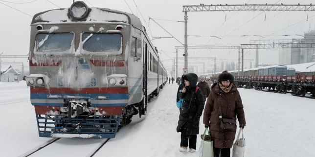 Le 7 février 2026, à la gare de Fastiv (Ukraine), endommagée par des attaques russes en décembre 2025.