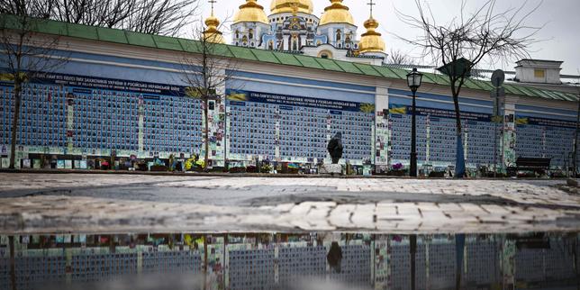 Le Mur du souvenir des soldats ukrainiens tombés au combat, à Kiev, le 23 février 2026, alors que le conflit avec la Russie atteint son quatrième anniversaire.