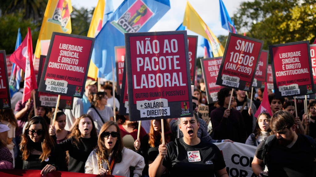 Des milliers de manifestants ont marché, samedi 8 novembre à Lisbonne, contre le projet de réforme majeure du droit du travail au Portugal. Le gouvernement de centre-droit cherche à introduire plus de flexibilité dans le marché. Sur fond de sifflets et de vuvuzela, les manifestants ont réclamé l'abandon de la réforme, alors que le plus grand syndicat du Portugal a, lui, appelé à la grève générale.