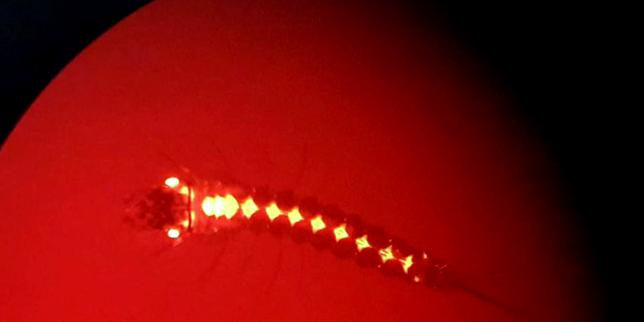 Une larve de moustique transgénique vue au microscope à l’Institut de santé d’Ifakara, en Tanzanie.