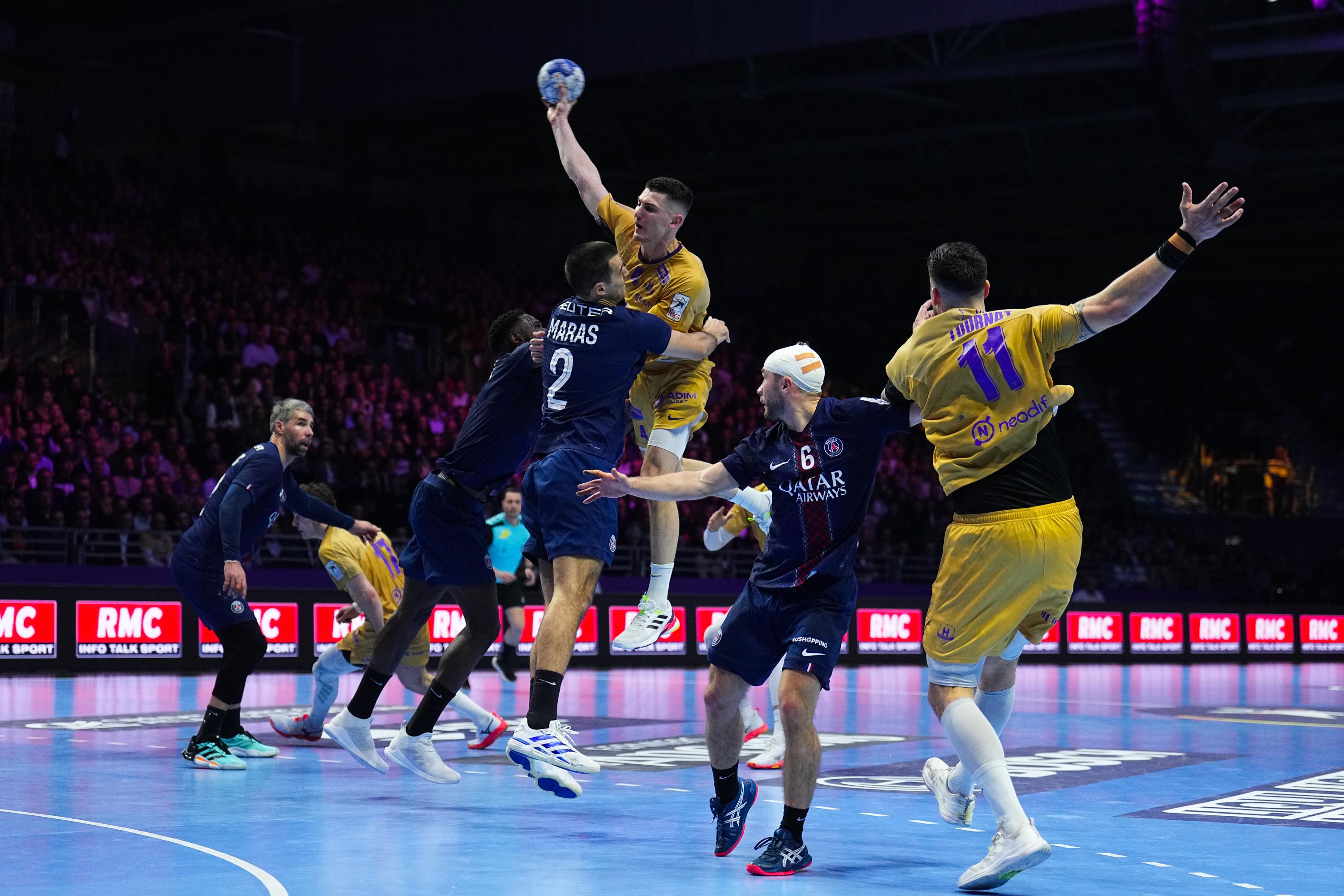 Les joueurs de l’équipe des Sables d’Olonne célèbrent leur victoire face à la formation de Plouvorn lors du 8ème tour de la Coupe de France, le 30 novembre 2025.