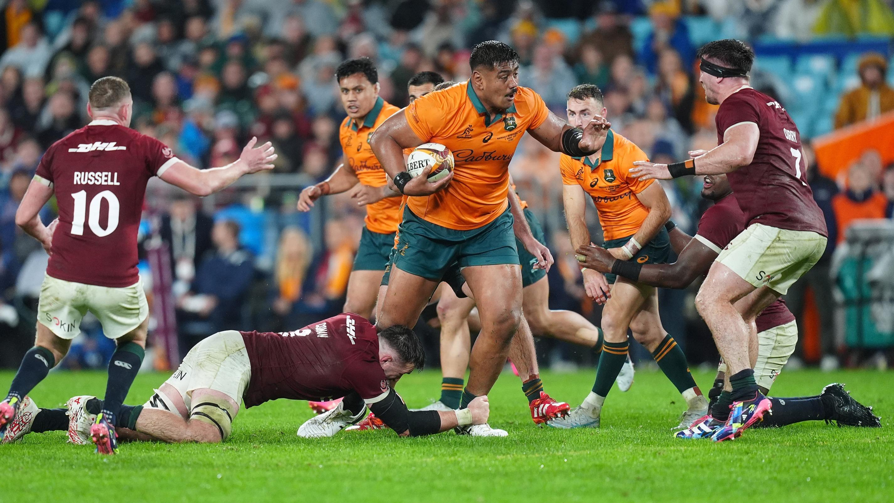 Le Fidjien Veitokani stoppe Louis Picamoles sous les yeux de Lambey, Lauret, Bastareaud, Bamba et Guirado (de gauche à droite).