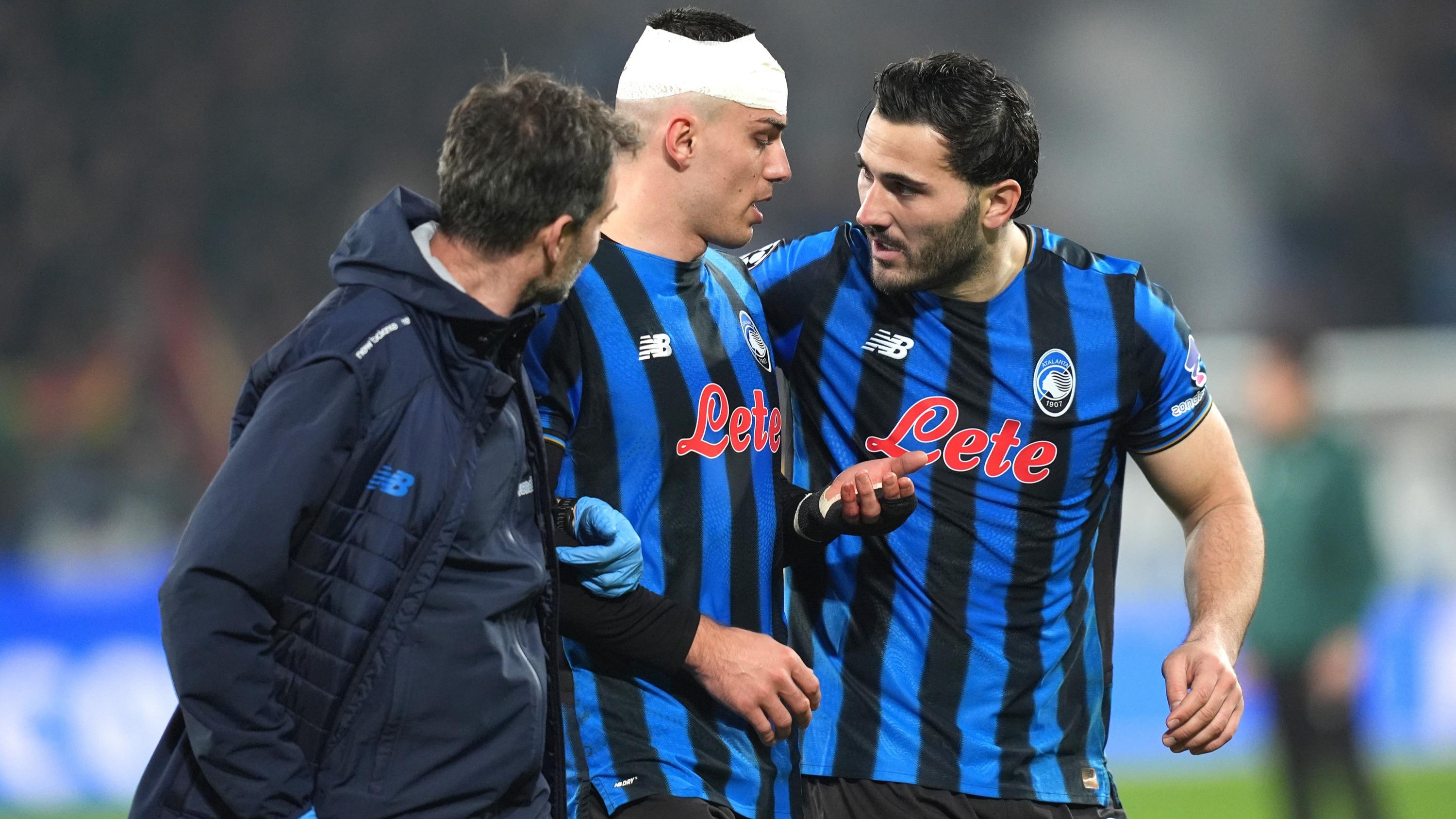Le défenseur de Dortmund Ramy Bensebaini a commis une faute très dangereuse sur l’attaquant de l’Atalanta Bergame Nikola Krstovic qui s’en sort avec une belle balafre...