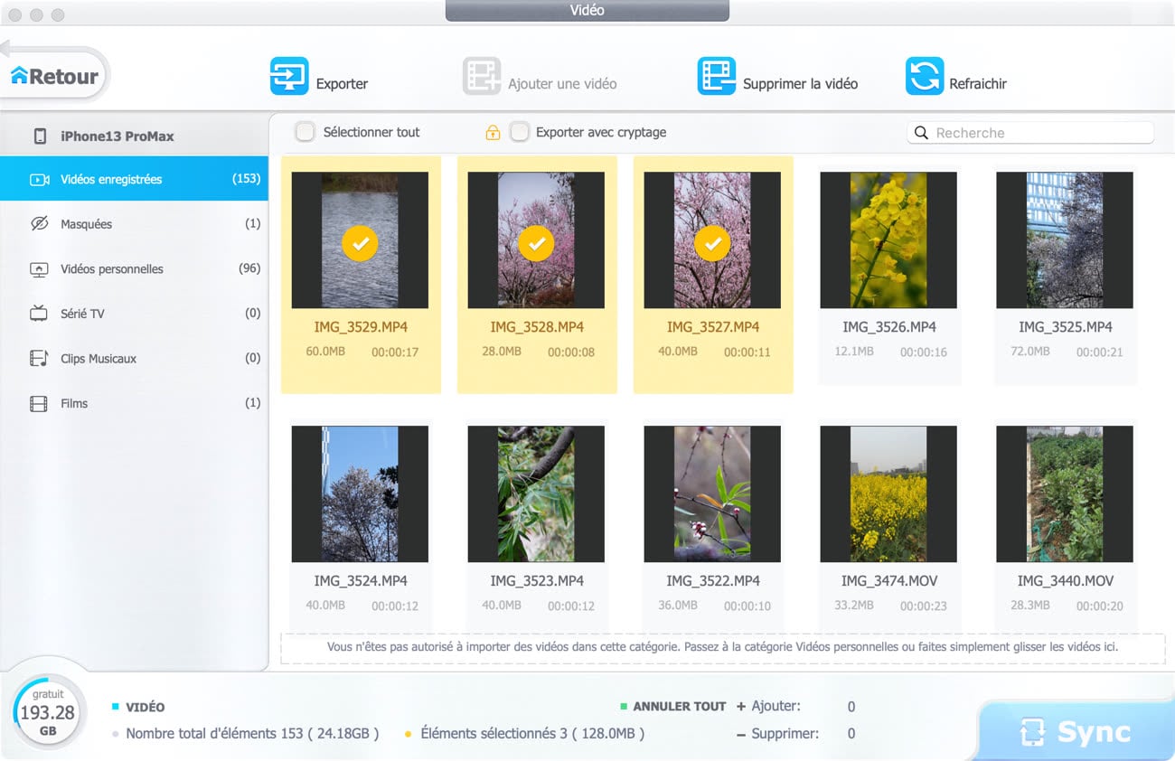 La gestion photo fonctionne dans les deux sens. Vous transférez vos fichiers entre iPhone et Mac en conservant leur résolution d'origine, qu'il s'agisse de ProRAW ou de HEIC. Pas de compromis sur la qualité, pas de compression sauvage qui massacre vos clichés. L'organisation se fait en quelques clics : tri par date, par album, ou selon vos propres dossiers personnalisés. C'est fluide, c'est cohérent, et ça respecte votre travail.