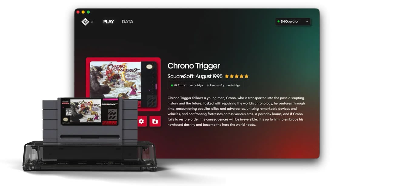 Les Roumains d'Epilogue ont encore frappé : après le GB Operator, un lecteur de cartouches de Game Boy en USB-C, ils viennent d'annoncer le SN Operator. C'est un lecteur de cartouches USB-C, encore, mais pour la Super Nintendo. Et comme pour le premier appareil, la compatibilité avec macOS est assurée.