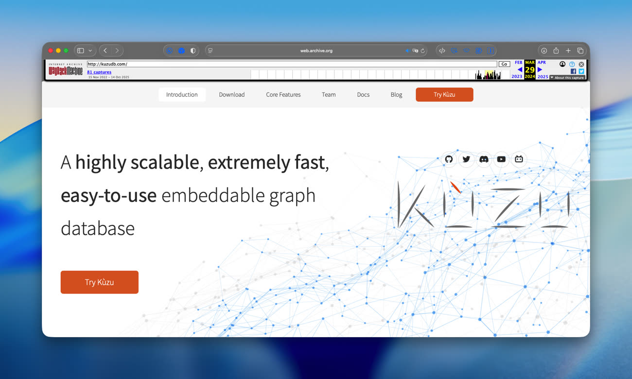 Le site web de la société canadienne a été débranché et son dépôt GitHub archivé le 10 octobre dernier. Kuzu a été créée en Ontario en 2023 et comptait une dizaine d'employés au moment de son acquisition.