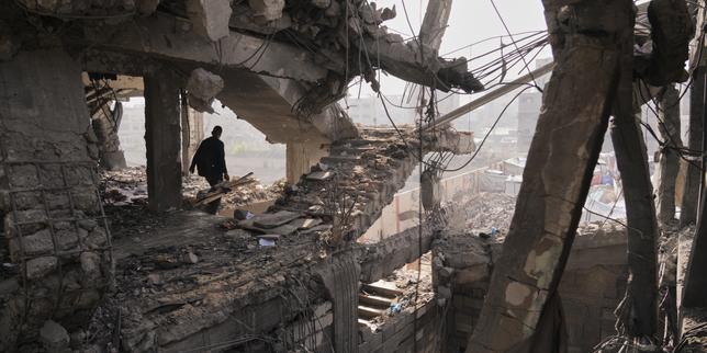 Un Palestinien marche dans les ruines d’un bâtiment bombardé par Israël la veille, dans la ville de Gaza, le 20 novembre 2025.